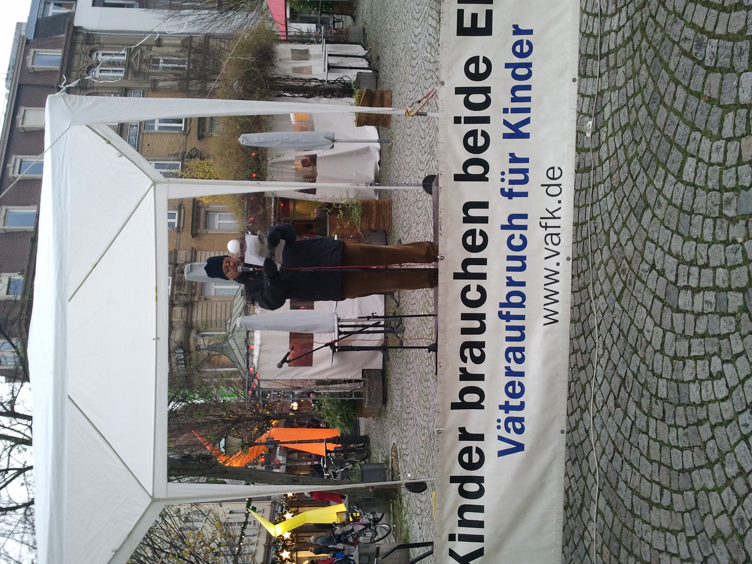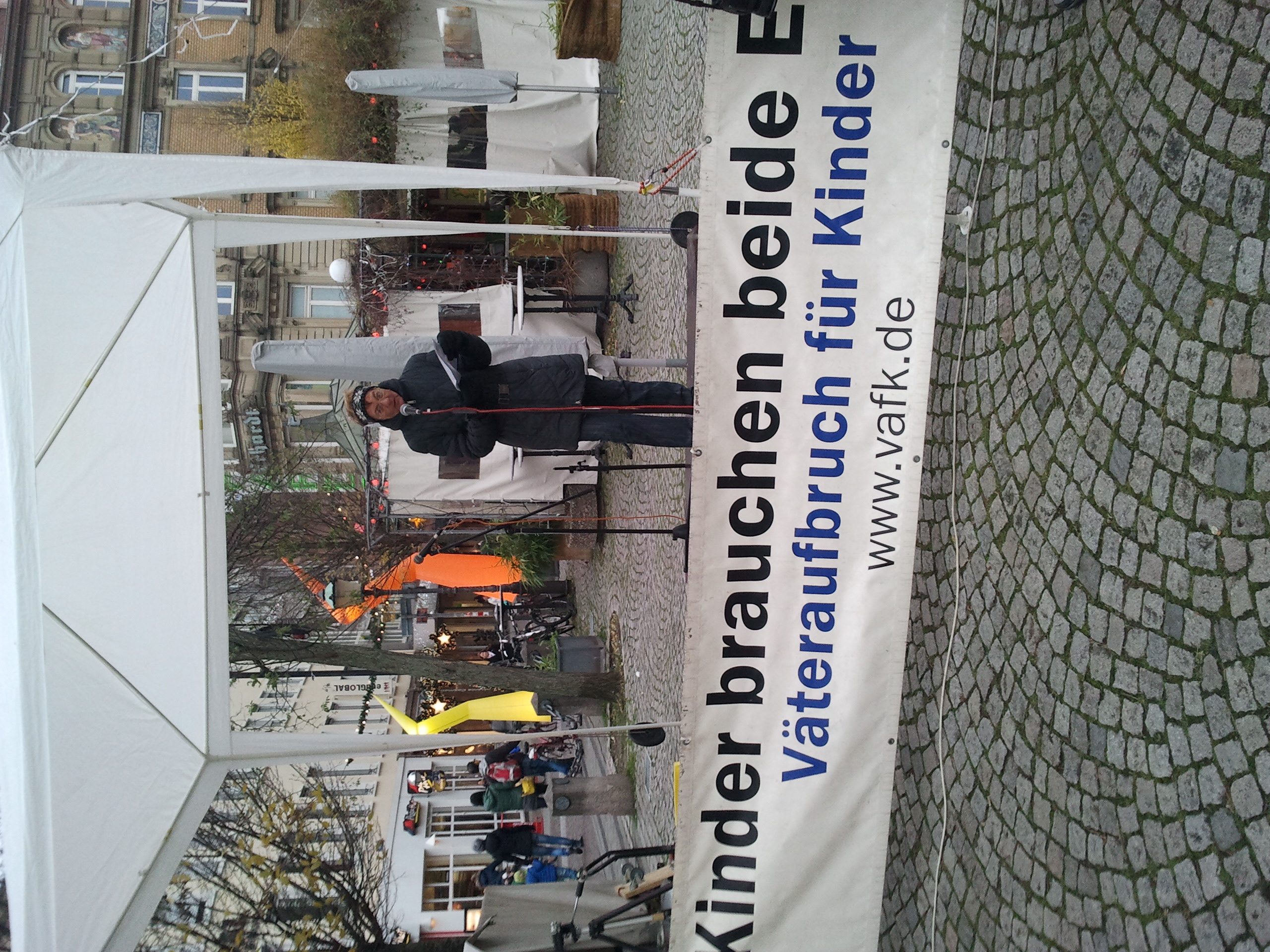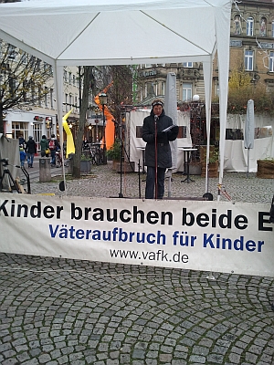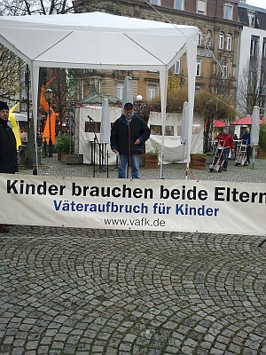 Es hagelt Proteste auf dem Platz der MenschenrechteKundgebung zum 60. Jahrestag der Allgemeinen Erklärung der MenschenrechteUnter dem Motto „Lasst uns nicht im Regen stehen!" versammeln sich am kommenden Sonntag Menschen- und Kinderrechtsgruppen aus Baden-Württemberg und Rheinland-Pfalz von 14 bis 16 Uhr auf dem Platz der Menschenrechte in Karlsruhe Stadtmitte zu einer Kundgebung mit Infostand und fachkundigen Rednern. Hintergrund ist die Feier zum 60. Gedenktag der Verabschiedung der Allgemeinen Erklärung der Menschenrechte durch die Vereinten Nationen, der am 10. Dezember begangen wird. Aufgerufen zu dieser Kundgebung hat der Landesverband Baden-Württemberg des Väteraufbruchs für Kinder e. V. (VAfK), der mit dieser Demonstration auf Missstände in der deutschen Familienrechtssprechung aufmerksam machen. Missstände, wegen denen die Bundesrepublik Deutschland vom Europäischen Gerichtshof für Menschenrechte in mindestens 9 Fällen wegen Menschenrechtsverletzungen verurteilt worden sei. „Die Familienrechtstheorie und die Praxis der Rechtssprechung klaffen in Deutschland noch immer meilenweit auseinander. Und so manches Familienrechtsurteil unserer 3. Gewalt steht nicht nur im Widerspruch zu unseren Grund- und bürgerlichen Rechten, sondern auch im krassen Widerspruch zu den Menschenrechten“, so Franzjörg Krieg, Vorsitzender des Verbands. „Die nicht im Einklang mit den Menschenrechten stehende, zumeist einseitig auf Mütter fixierte Struktur von Familiengerichten und Jugendämtern, zwingt viele Elternpaare geradezu in einen Scheidungskrieg um das alleinige Sorgerecht.“, so Krieg weiter. „Verlierer sind dabei die Kinder und ihre Väter. Mit dieser Kundgebung halten wir Deutschland, das nur allzu gerne auf Verletzungen der Menschenrechte in anderen Ländern hinweist, einen Spiegel vor.“ Auch bei der